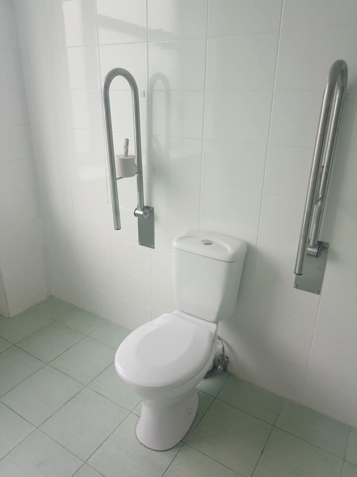 В туалеті приймального відділення після ремонту створені зручні умови для перебування людей з обмеженими можливостями.